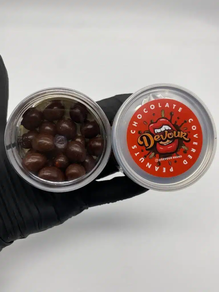 Like all cannabis edibles, Devour Chocolate Covered Peanuts need to be digested before the THC activates in the body.
