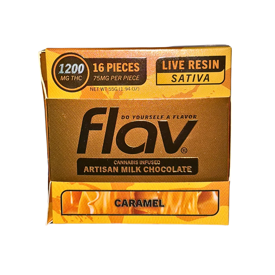 In today’s cannabis world, innovation has elevated edibles far beyond the simple brownie. The new generation of consumers demands flavor, potency, and precision — and few brands deliver that balance better than FLAV. One of their most sought-after creations, the FLAV Chocolate Bar – CARAMEL Live Resin 1200mg, represents the pinnacle of luxury, consistency, and power in the edible market.