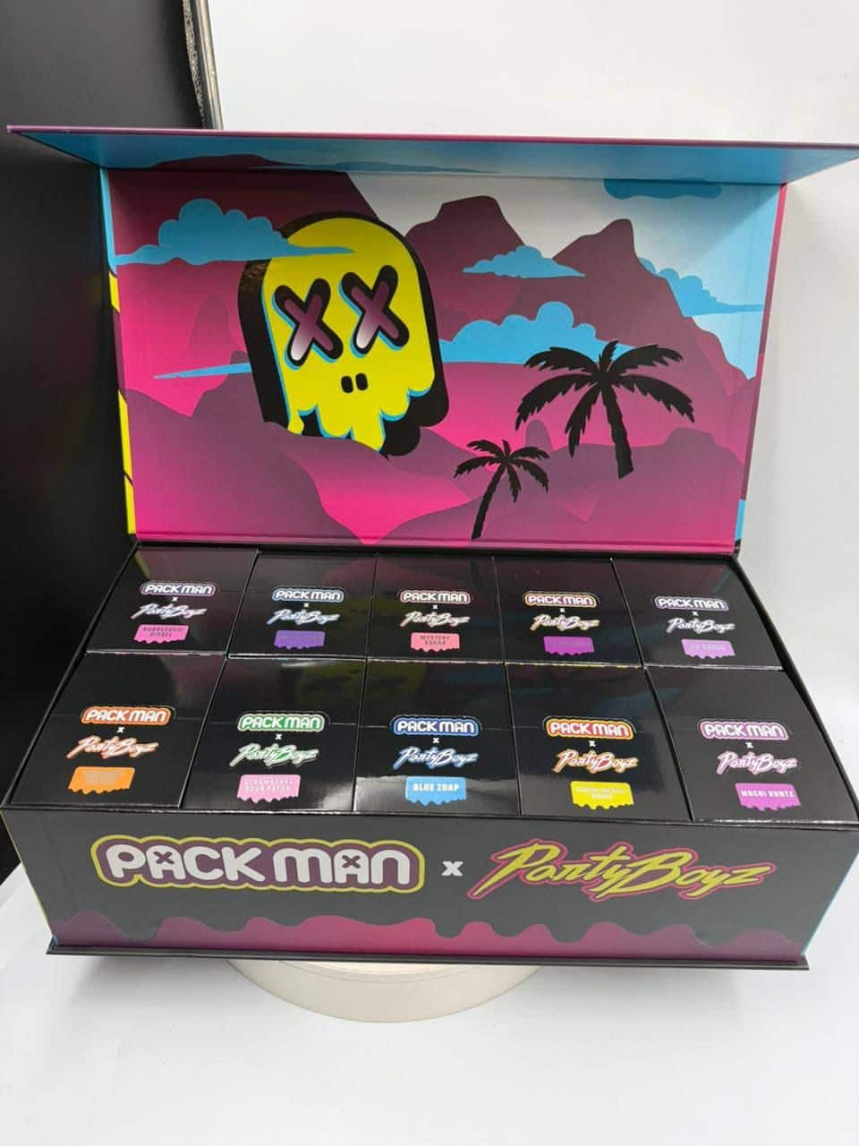 The Pack Man X PantyBoyz 3G Disposable is a disposable cannabis vape device containing 3 grams (3,000 mg) of premium cannabis oil. This collaboration brings together Pack Man, a brand known for bold, high-potency disposables, and PantyBoyz, a group recognized for their unique cannabis culture and branding.