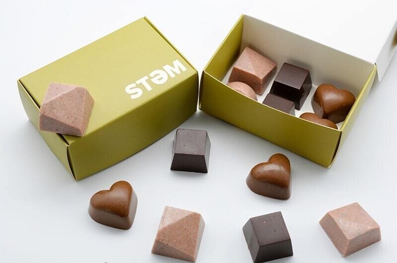 STEM assorted half gram chocolates are the perfect treat for sharing with your better half, but they are so delicious that you may want to eat the whole box yourself. Each box has a combination of dark chocolate, milk chocolate and strawberry white chocolate. We use premium callebaut belgian chocolate and local strawberry freeze dried powder.