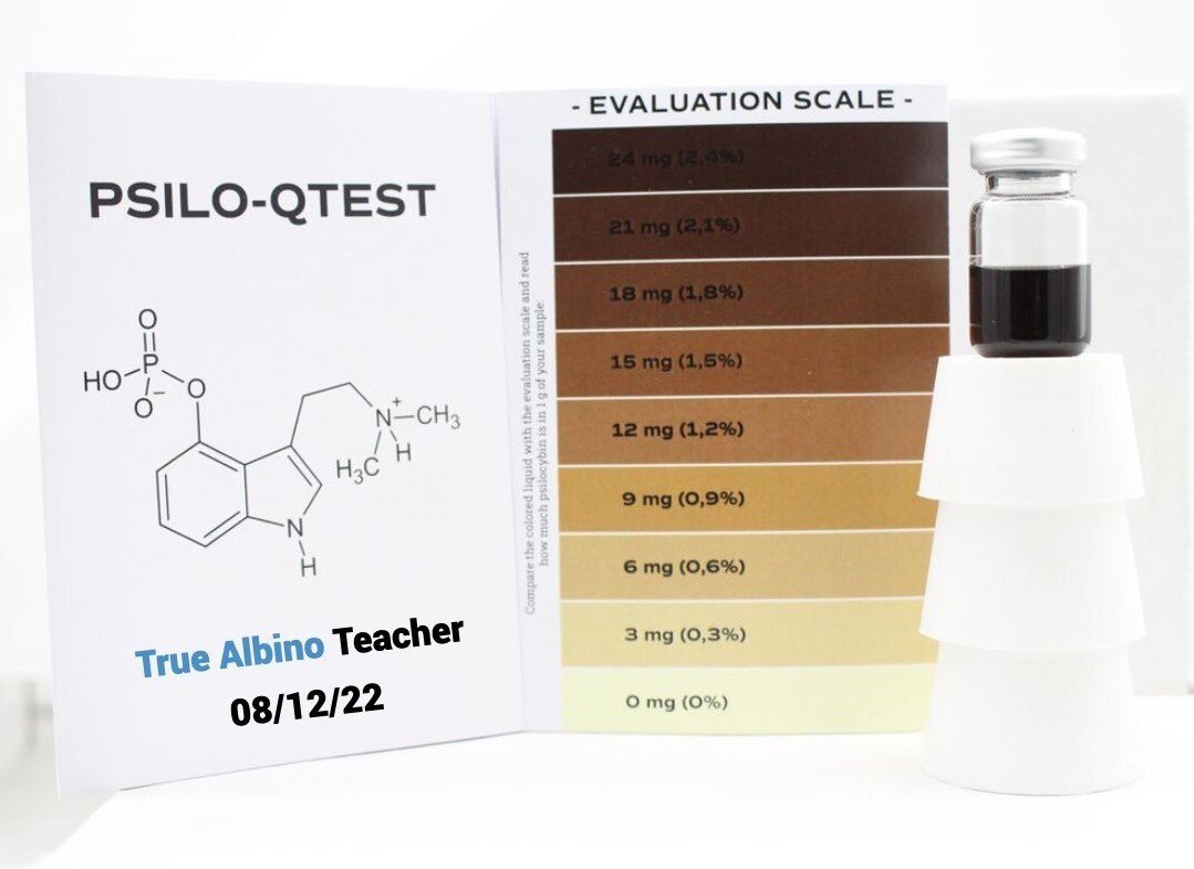 <p “=””>Our True Albino Teacher has been tested using the PSILO-Q Test kit, the first ever home-use quantitative psilocybin testing kit. Results show that this variety contains over 2% tryptamine content, significantly higher than Golden Teacher.
